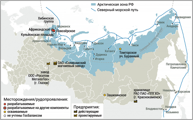 По данным Минприроды, российские запасы РЗМ значительны – 28,5 млн т суммы оксидов РЗМ (ΣTR₂O₃). Однако степень освоенности сырьевой базы низкая, поскольку большинство месторождений редкоземельных руд расположены в удаленных районах со слаборазвитой инфраструктурой, отличаются сложным комплексным составом руд, содержат радиоактивные элементы.