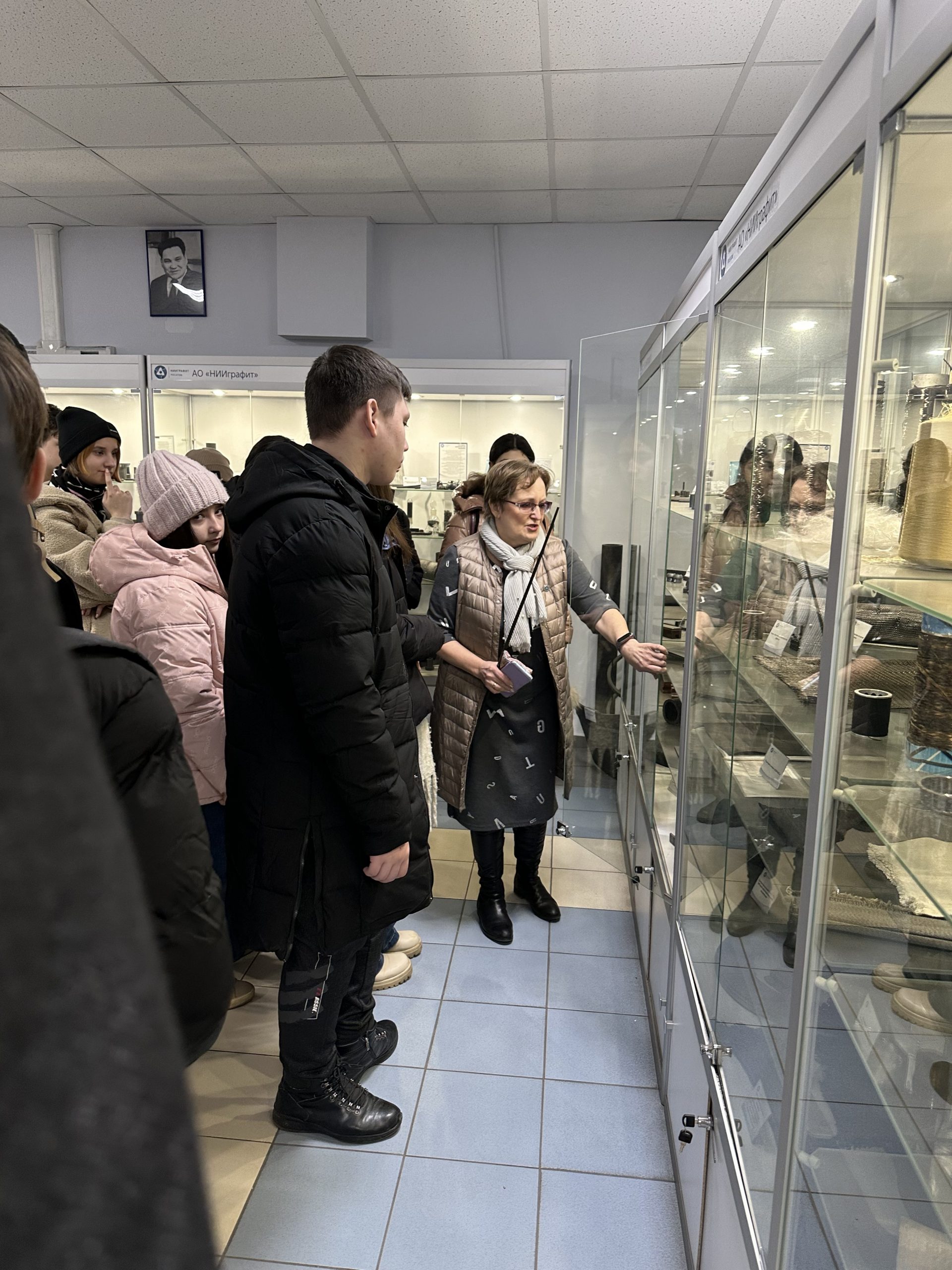 Лариса Соловьева, Ирина Шишкова и Евгений Федоров показали ребятам уникальные музейные экспонаты: образцы ионообменных смол и экстрагентов для извлечения урана, редких и редкоземельных элементов, золота, меди и других металлов, изделия из силицированного графита, углерод-углеродных материалов, детали для космического корабля «Буран», медицинские изделия. Школьникам также рассказали о производимых в Гиредмете монокристаллах антимонида индия и галлия, пластинах из них, сцинтилляционных монокристаллах для детекторов ионизирующих излучений, полупроводниковых материалах для детекторов и спектрометров ионизирующих излучений, и их применении в отечественной промышленности.